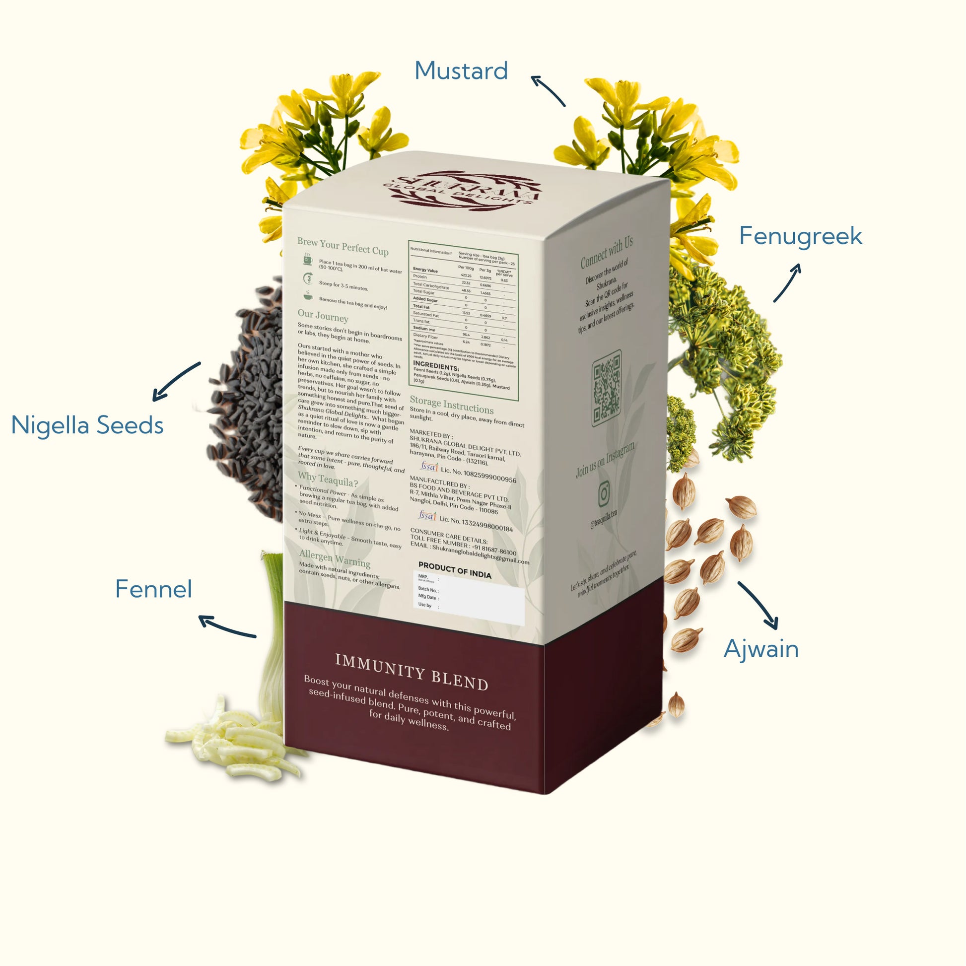 Inspired by ancient Indian kadha, reimagined for daily immune support with a powerful seed synergy — no sugar, just soul.